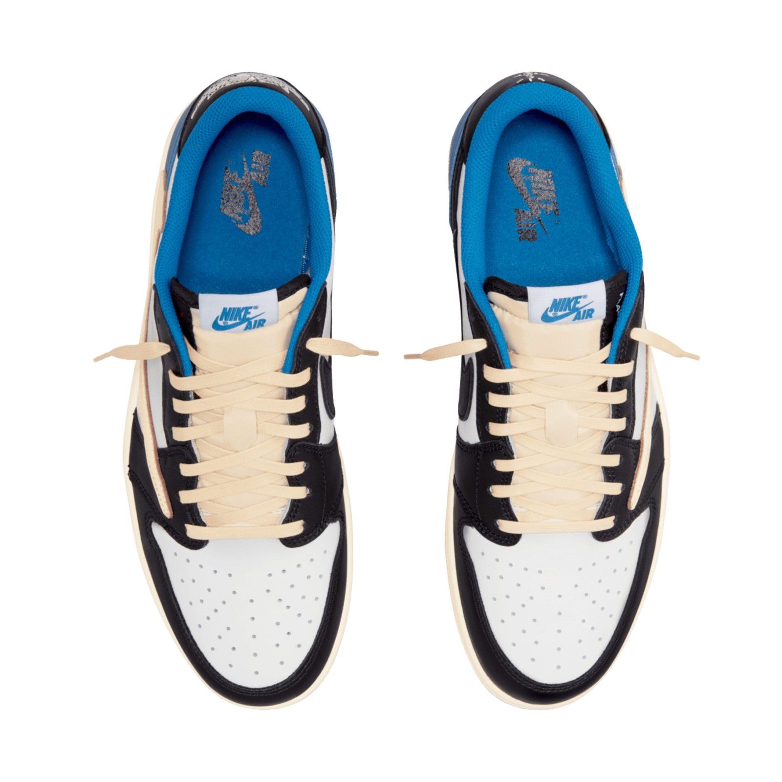 Their Air Jordan 1 Low colourway comes in familiar colour blocking schemes, but with special touches only Scott and Fujiwara could’ve conjured up. On top of an aged midsole with matching Sail laces, fresh Military Blue accents the heel, collar and insole, providing a new flavour for a classic make-up. And no need for double-takes at the Sail Swoosh—it’s indeed backwards—now a signature Scott touch for his Air Jordan 1 designs.